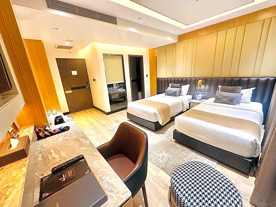 Accommodations lineup spans a variety of Deluxe and Premium options. Notable room types include Deluxe Twin (280 sqft; sleeps up to 4 adults and 3 children), Deluxe Single (248 sqft), Deluxe Queen (237 sqft), Deluxe Suite (301 sqft), Zabeer Suite, Premium Deluxe King (259 sqft), Premium Deluxe 2 Twin (269 sqft), and Deluxe Premium variants such as Deluxe Queen Single Use and Premium Deluxe Double (plus other Deluxe configurations).