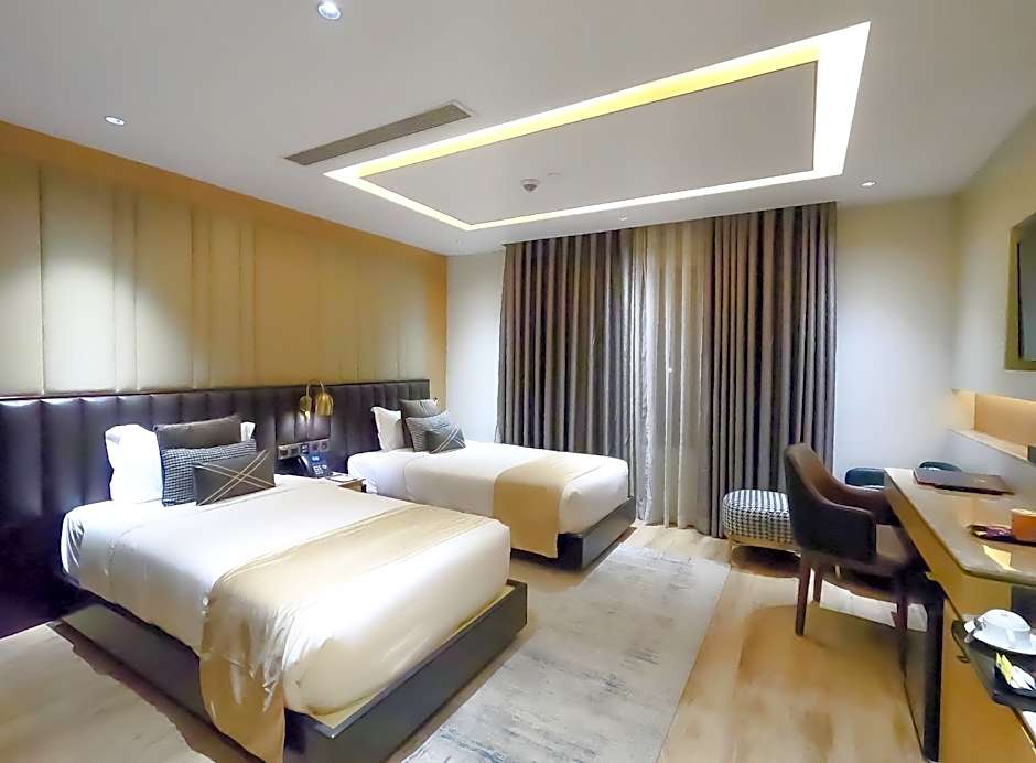 Accommodations lineup spans a variety of Deluxe and Premium options. Notable room types include Deluxe Twin (280 sqft; sleeps up to 4 adults and 3 children), Deluxe Single (248 sqft), Deluxe Queen (237 sqft), Deluxe Suite (301 sqft), Zabeer Suite, Premium Deluxe King (259 sqft), Premium Deluxe 2 Twin (269 sqft), and Deluxe Premium variants such as Deluxe Queen Single Use and Premium Deluxe Double (plus other Deluxe configurations).